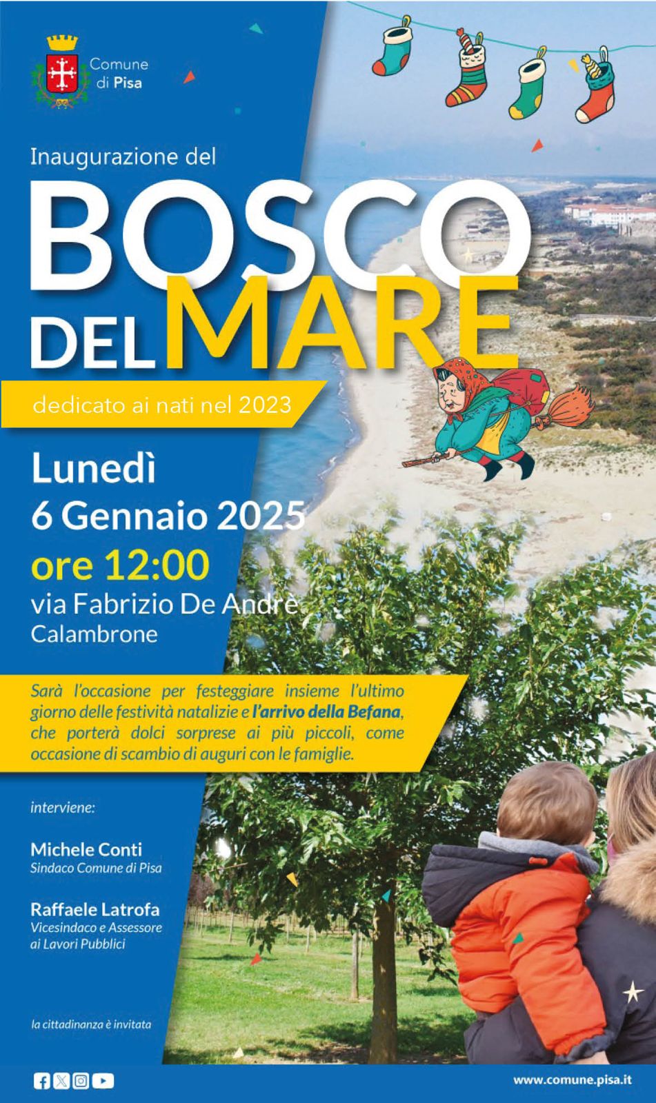 - ore 12.00 Inaugurazione del Bosco dei nuovi nati a Calambrone. Arrivo della Befana e distribuzione di dolcetti a tutti i bambini presenti.