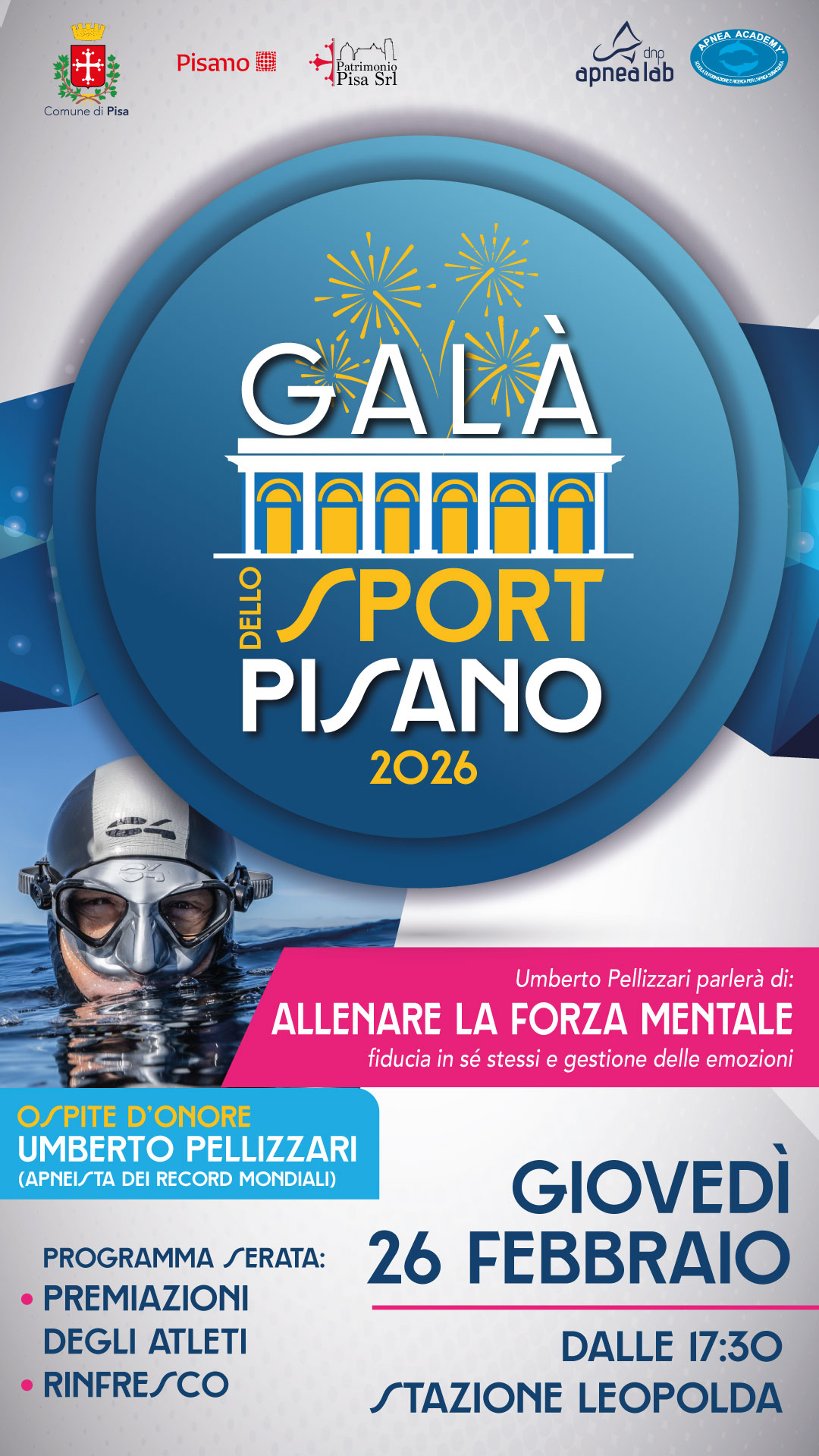 Si terrà giovedì 26 febbraio, a partire dalle ore 17.30, alla Stazione Leopolda, il Gala dello Sport Pisano 2026, appuntamento dedicato al mondo sportivo del territorio che vedrà la partecipazione straordinaria di Umberto Pelizzari, apneista di fama internazionale e protagonista di numerosi record mondiali.