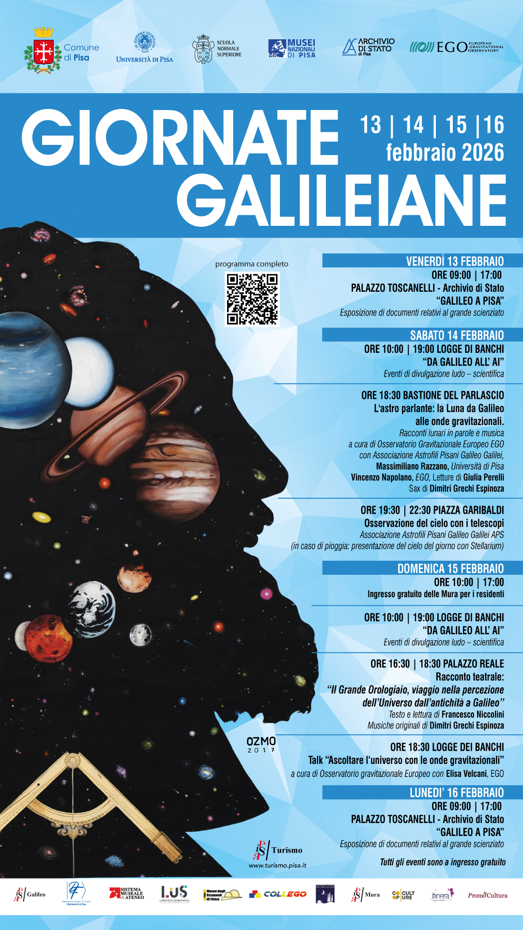 Dal 13 al 16 febbraio, tornano le Giornate Galileiane. La rassegna, nata nel 2019 e promossa dal Comune di Pisa in sinergia con le istituzioni accademiche e scientifiche del territorio, propone un ricco calendario di appuntamenti tra rigore storico, divulgazione e performance artistiche.